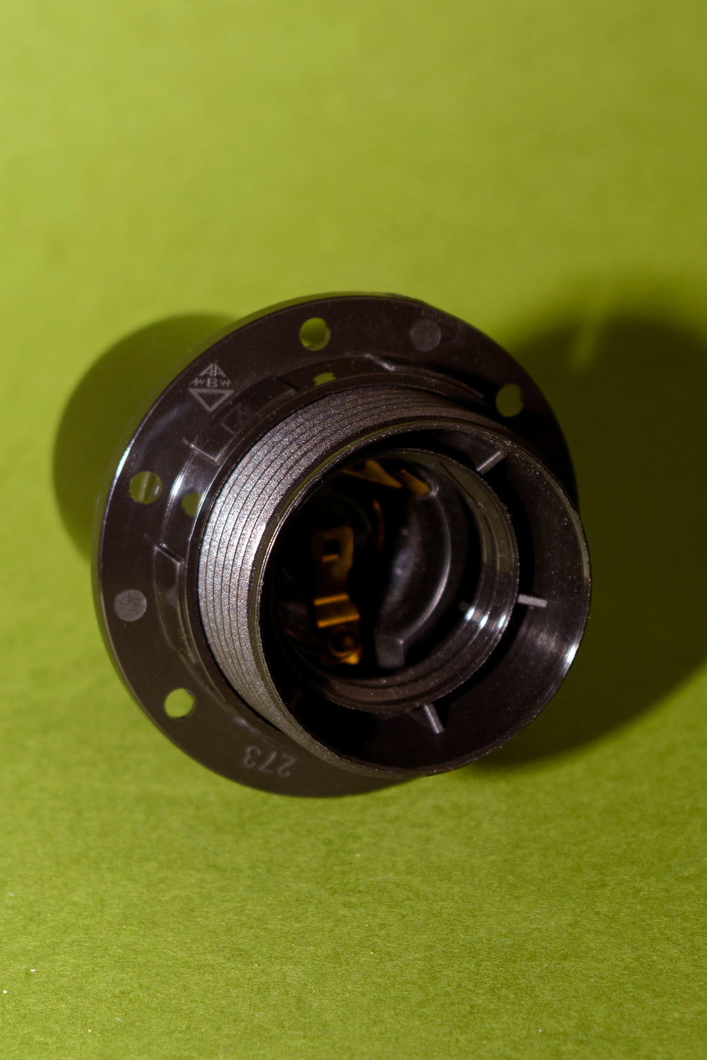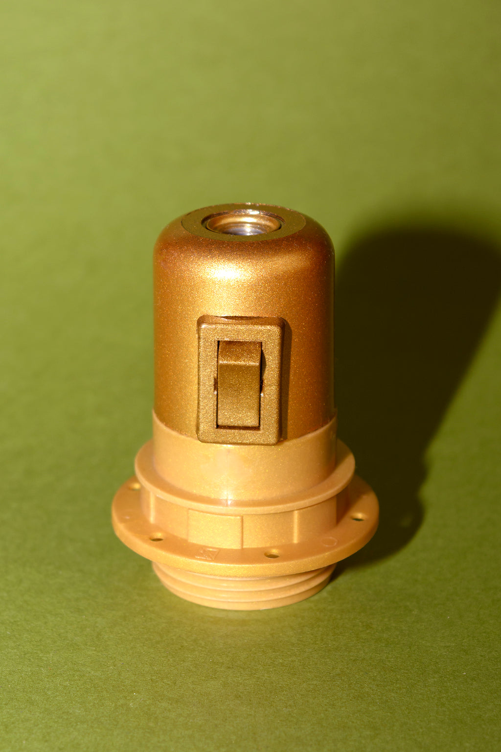 Portalámparas europeo E27 con interruptor. Termoplástico con acabado pulido brillante, similar a la baquelita.